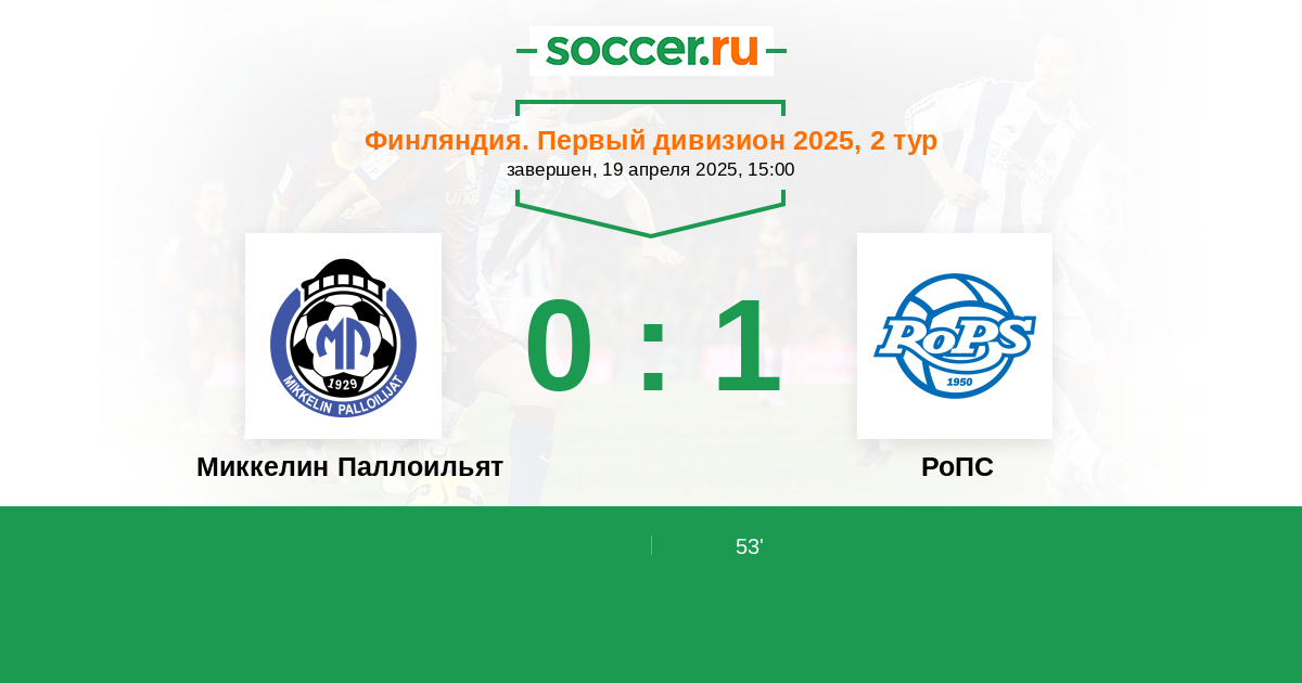 Протокол матча Миккелин Паллоильят против РоПС