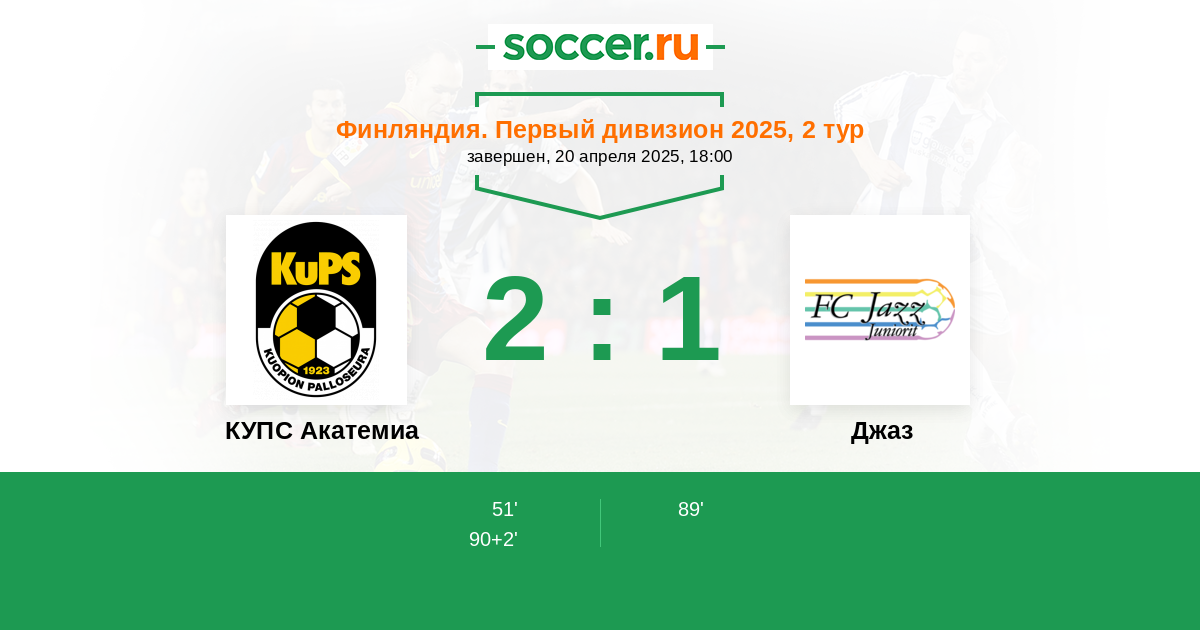 Протокол матча КУПС Акатемиа против Джаз