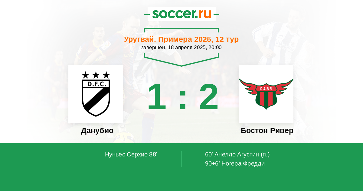 Протокол матча Данубио против Бостон Ривер