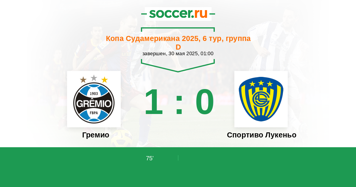 75' (1:0) R. Freitas dos Santos (Павон Кристиан (7))