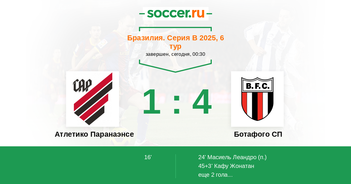 Протокол матча Атлетико Паранаэнсе против Ботафого СП