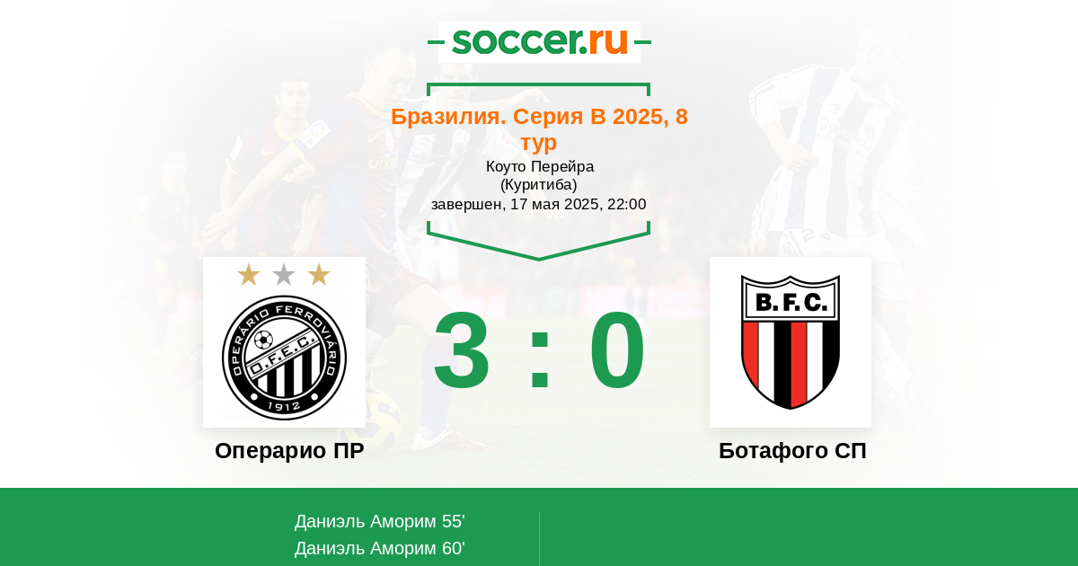 Протокол матча Операрио ПР против Ботафого СП