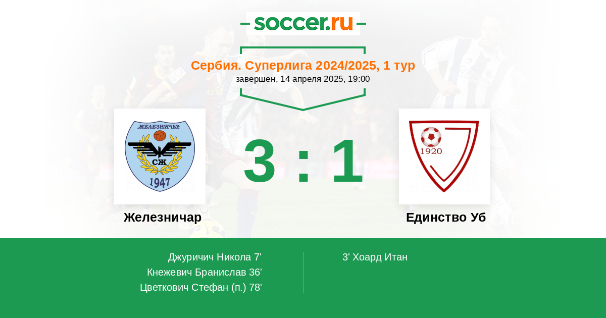Протокол матча Железничар против Единство Уб