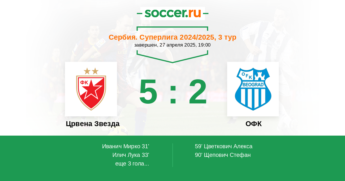 Протокол матча Црвена Звезда против ОФК
