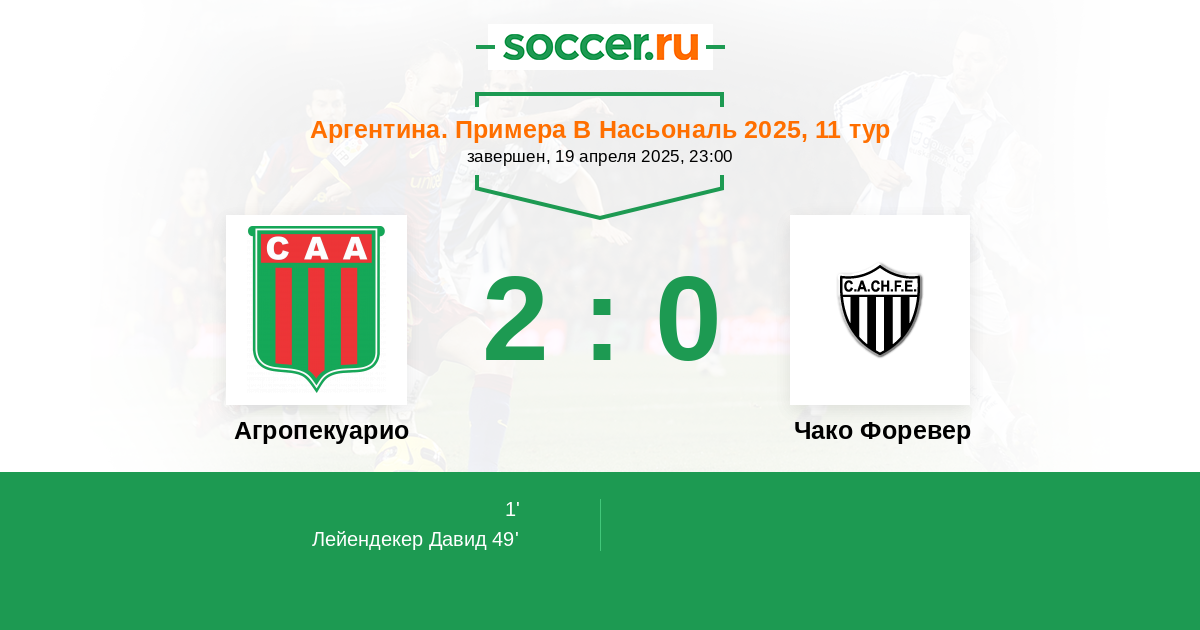 Протокол матча Агропекуарио против Чако Форевер