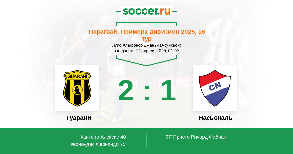 Протокол матча Гуарани против Насьональ