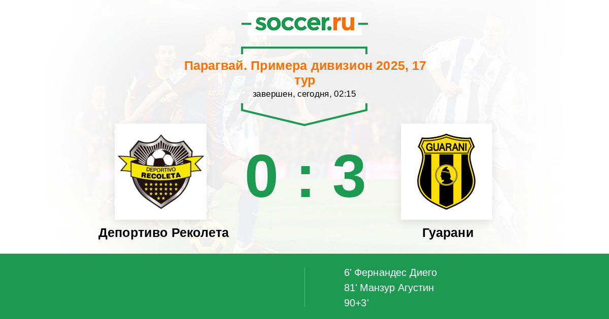 Протокол матча Депортиво Реколета против Гуарани