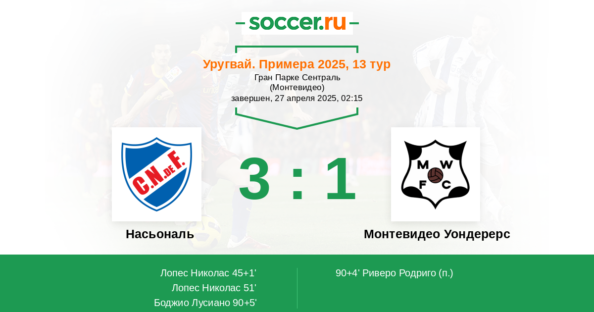 Протокол матча Насьональ против Монтевидео Уондерерс