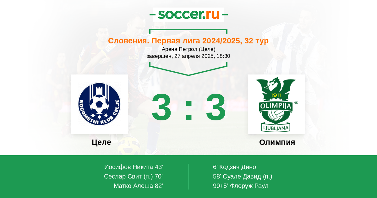Протокол матча Целе против Олимпия