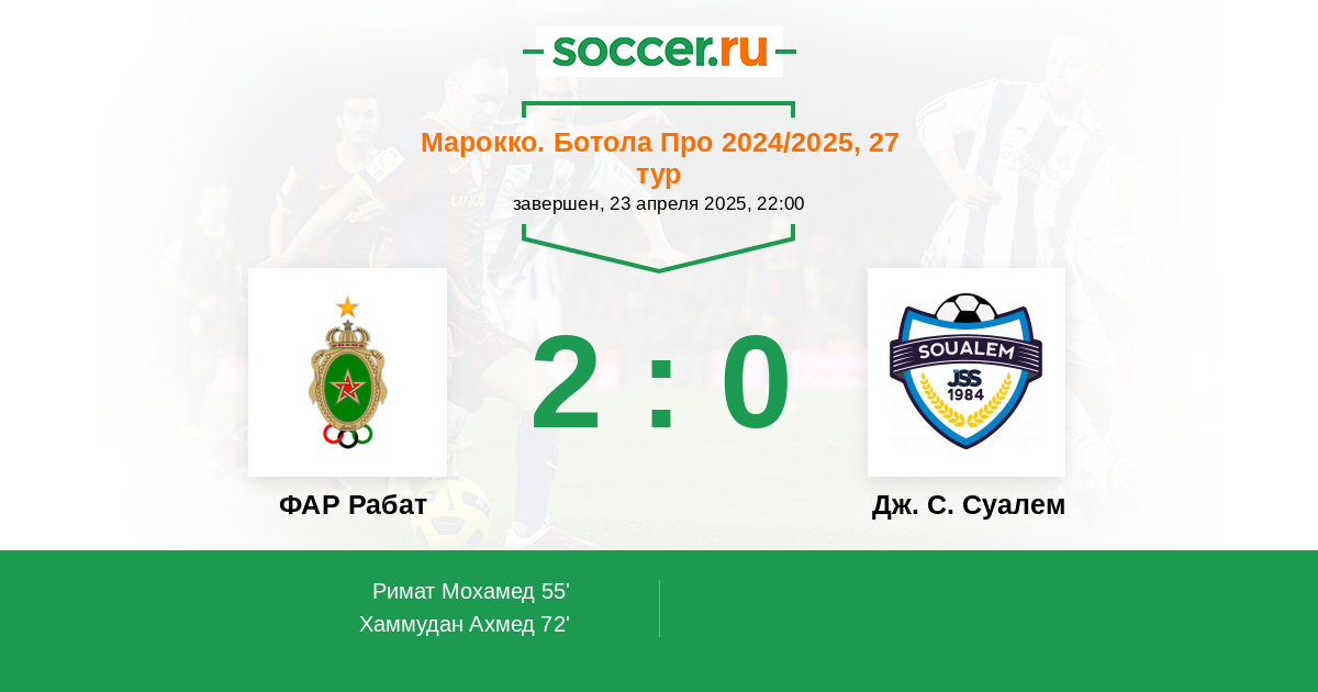 Протокол матча ФАР Рабат против Дж. С. Суалем