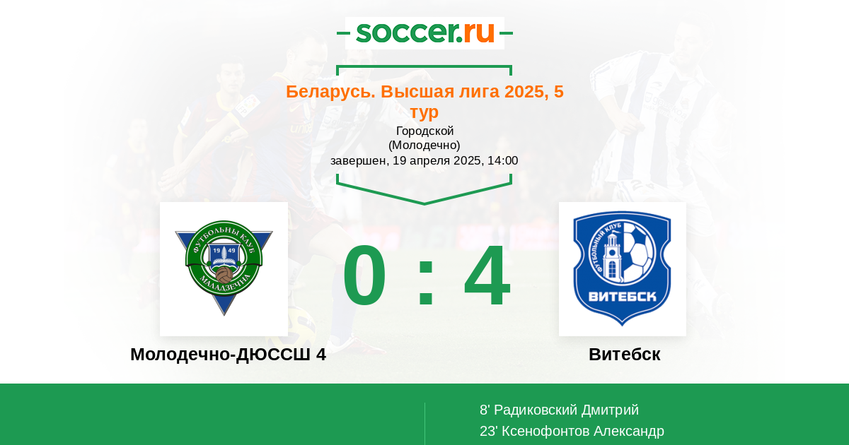 Протокол матча Молодечно-ДЮССШ 4 против Витебск