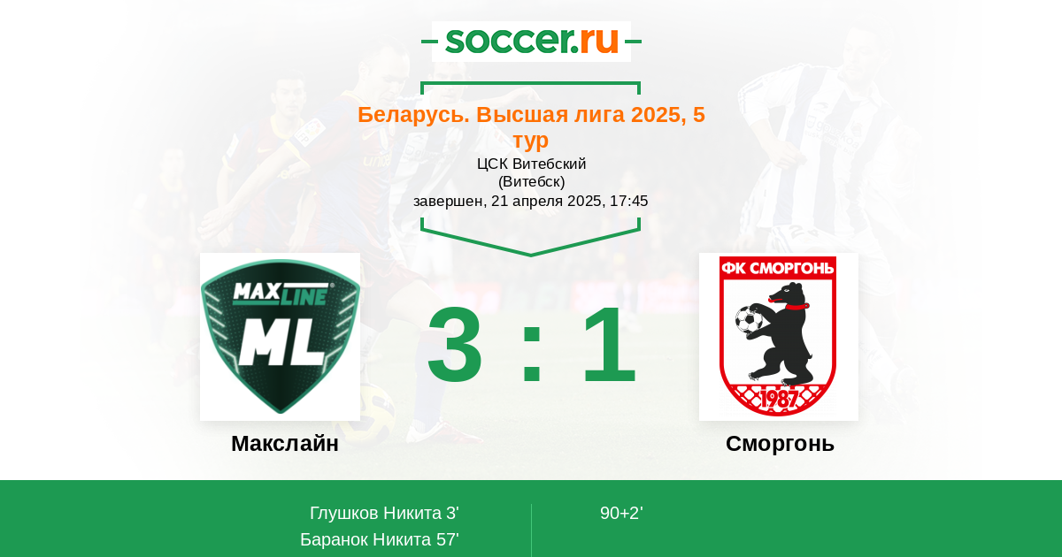 Протокол матча МЛ Витебск против Сморгонь