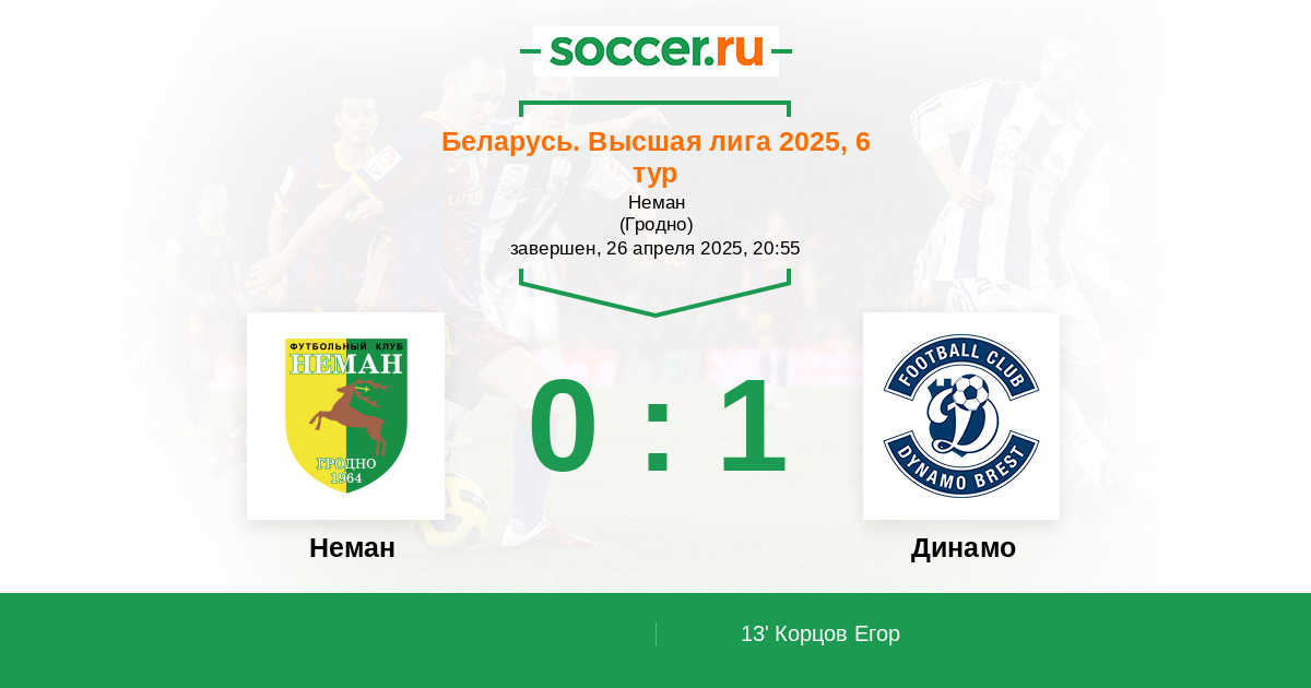 Протокол матча Неман против Динамо