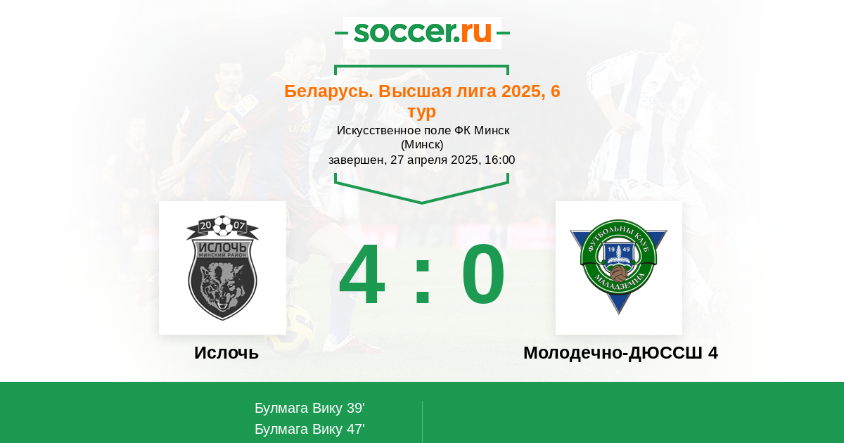 Протокол матча Ислочь против Молодечно-ДЮССШ 4