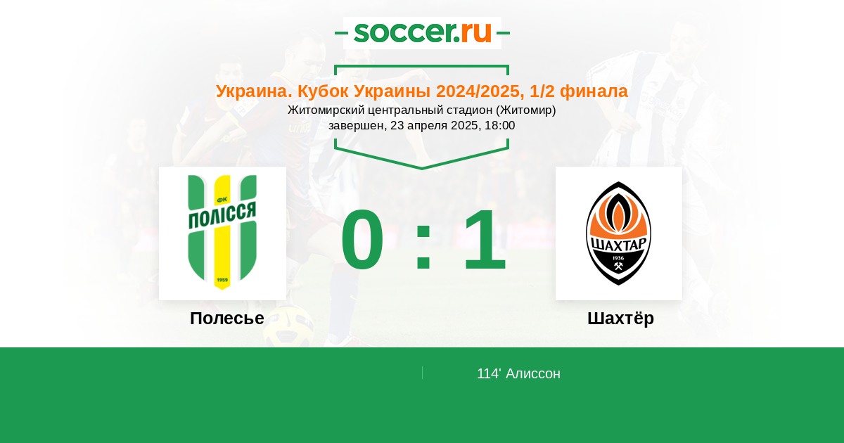 Протокол матча Полесье против Шахтёр