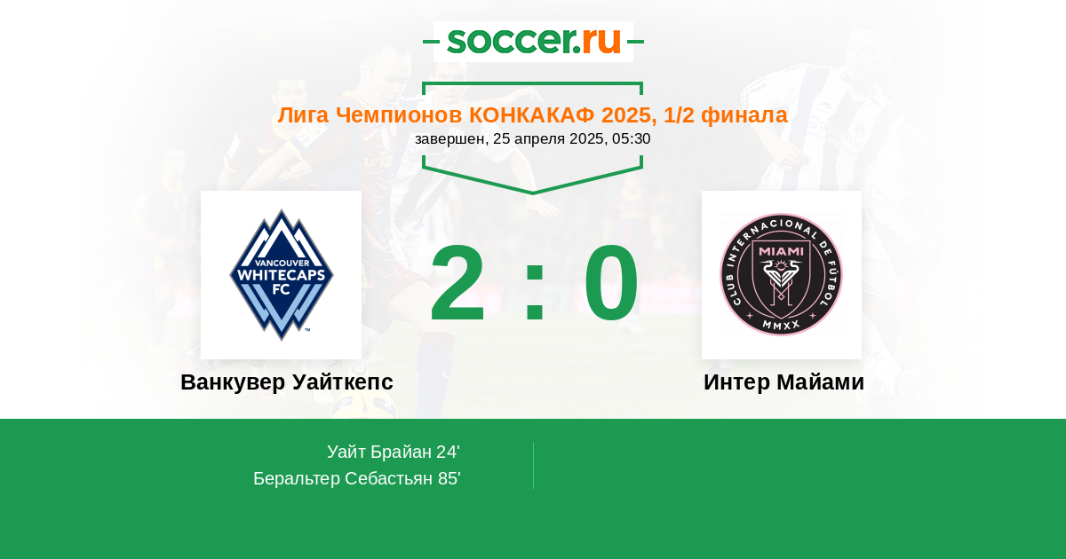 Протокол матча Ванкувер Уайткепс против Интер Майами