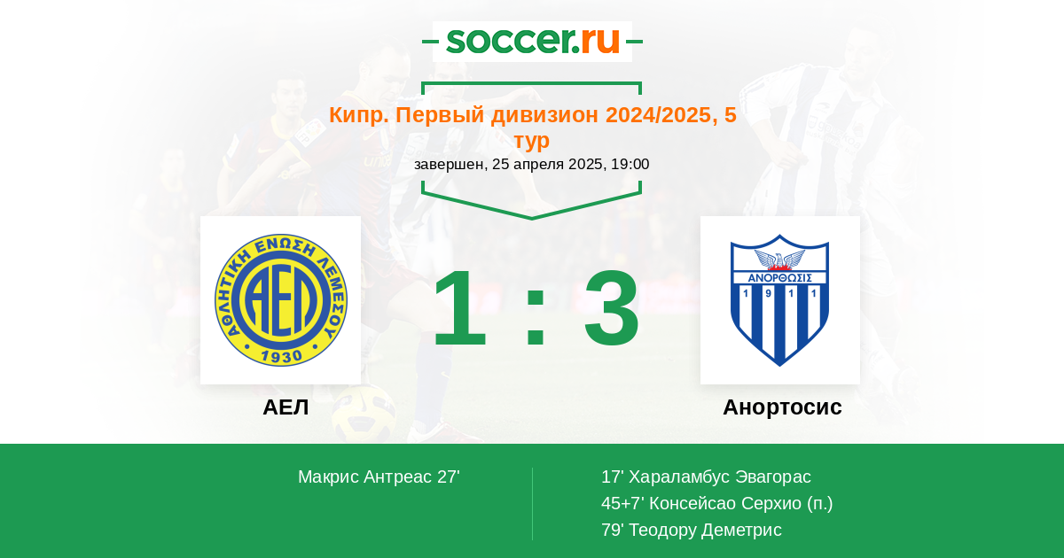 Протокол матча АЕЛ против Анортосис
