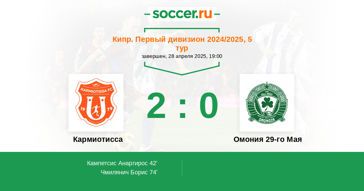 Протокол матча Кармиотисса против Омония 29-го Мая