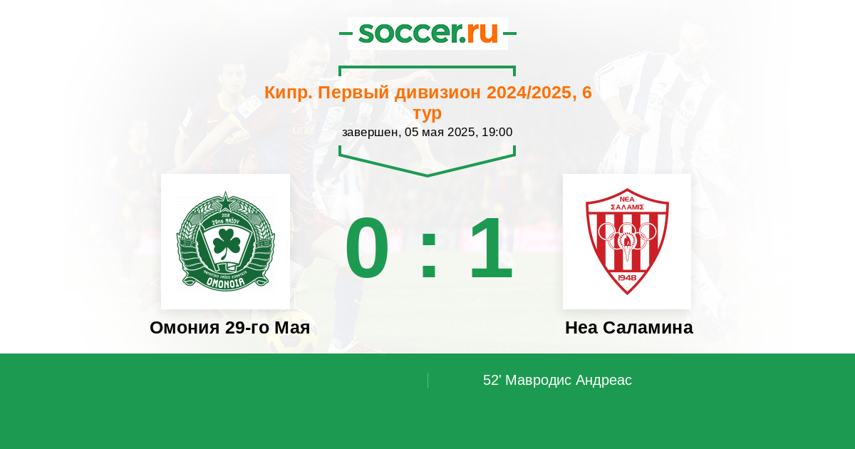 Протокол матча Омония 29-го Мая против Неа Саламина