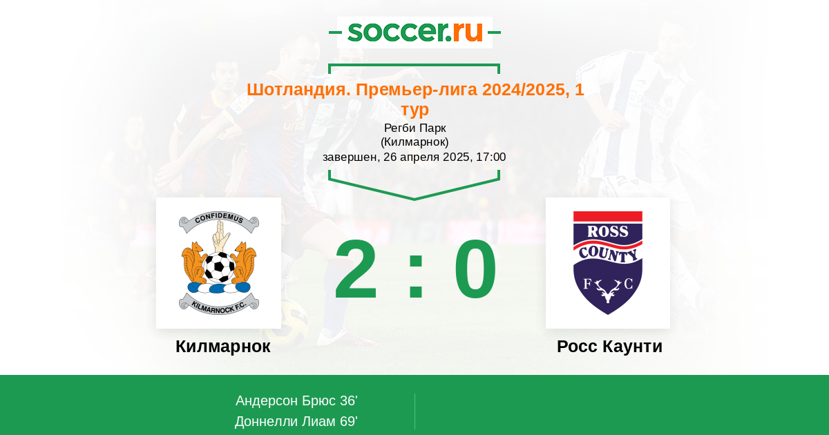 Протокол матча Килмарнок против Росс Каунти