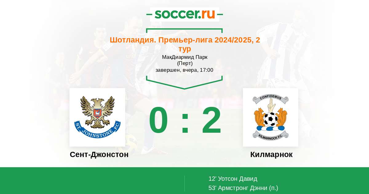 Протокол матча Сент-Джонстон против Килмарнок
