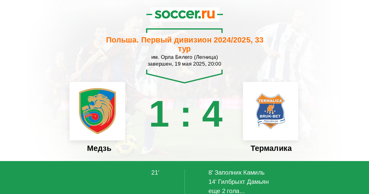 Протокол матча Медзь против Термалика