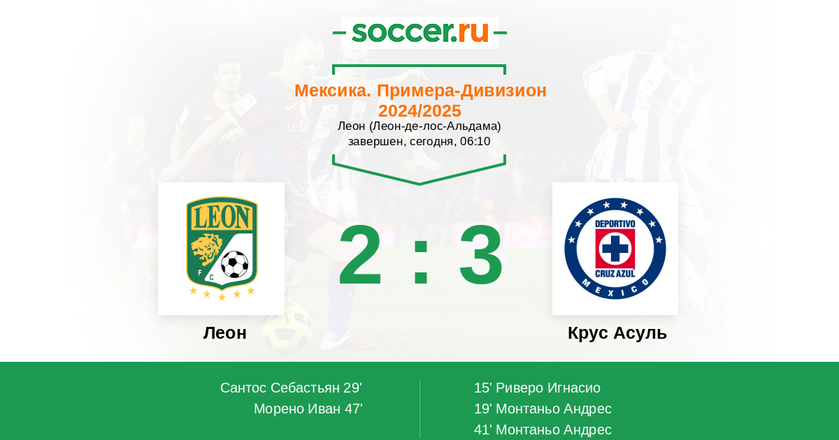 Протокол матча Леон против Крус Асуль