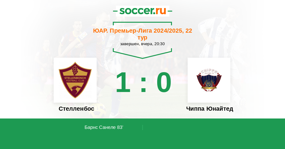 Протокол матча Стелленбос против Чиппа Юнайтед