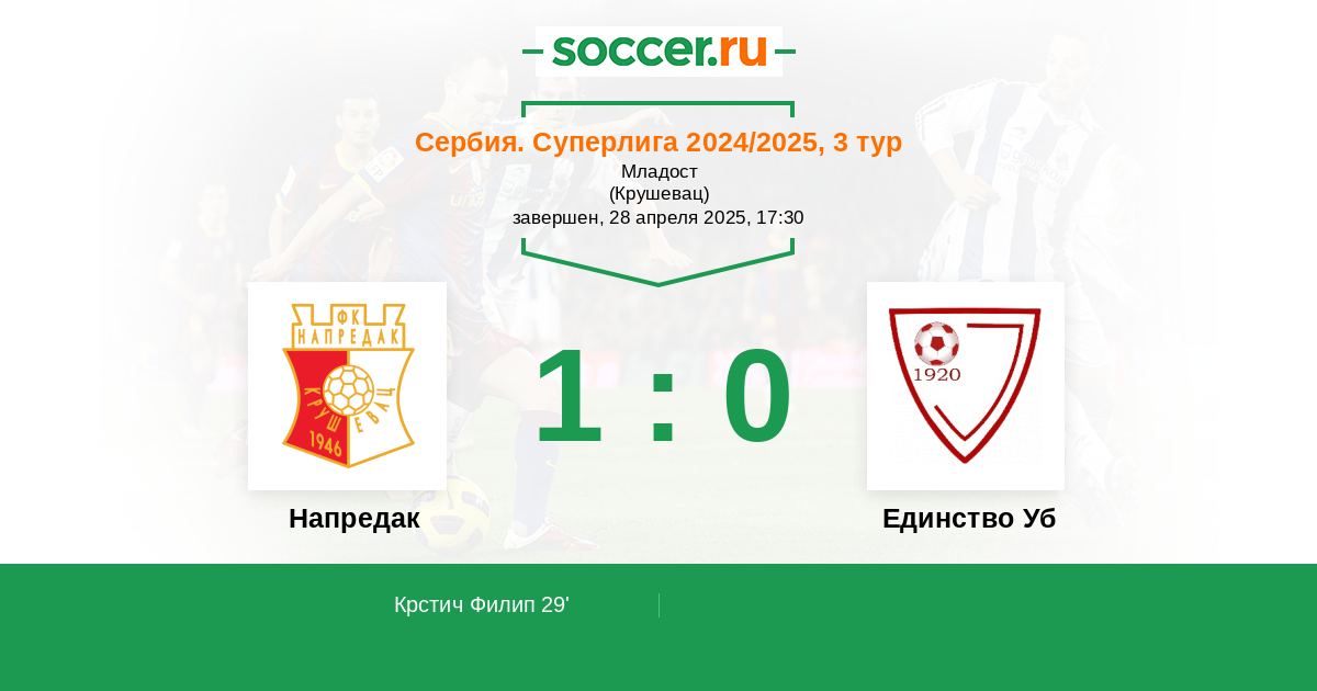 29' (1:0) Крстич Филип (4)