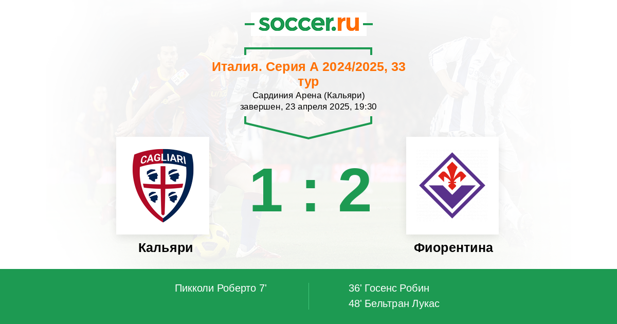 Протокол матча Кальяри против Фиорентина