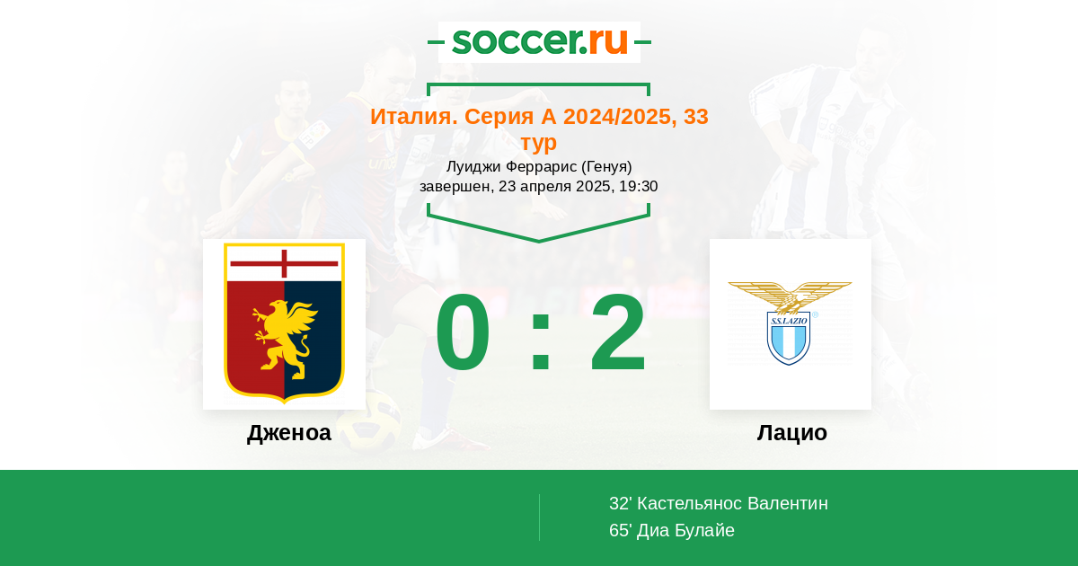 Протокол матча Дженоа против Лацио