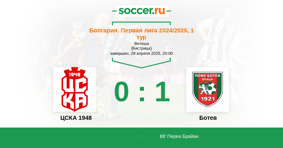 Протокол матча ЦСКА 1948 против Ботев