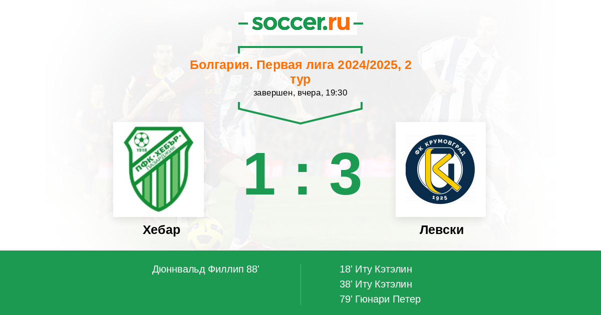 Протокол матча Хебар против Левски