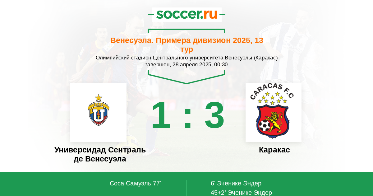 Протокол матча УСВ против Каракас