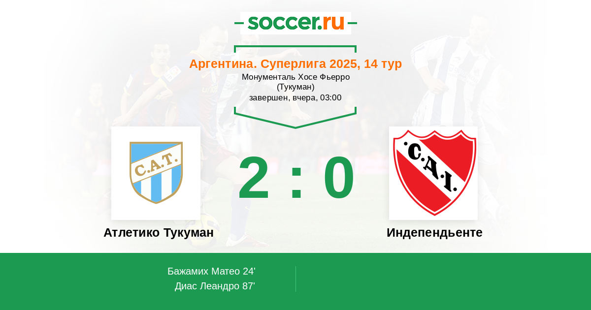 Протокол матча Атлетико Тукуман против Индепендьенте