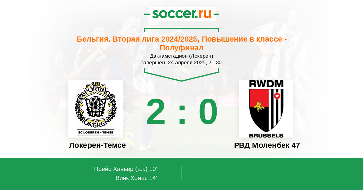 Протокол матча Локерен-Темсе против РВД Моленбек 47