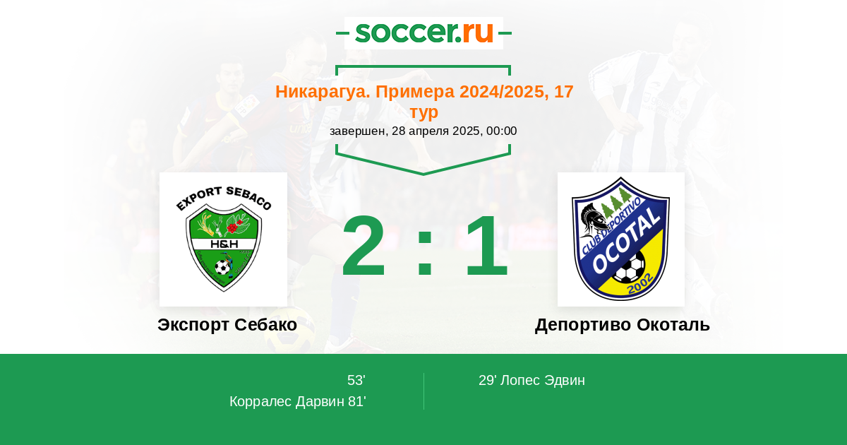 Протокол матча Экспорт Себако против Депортиво Окоталь