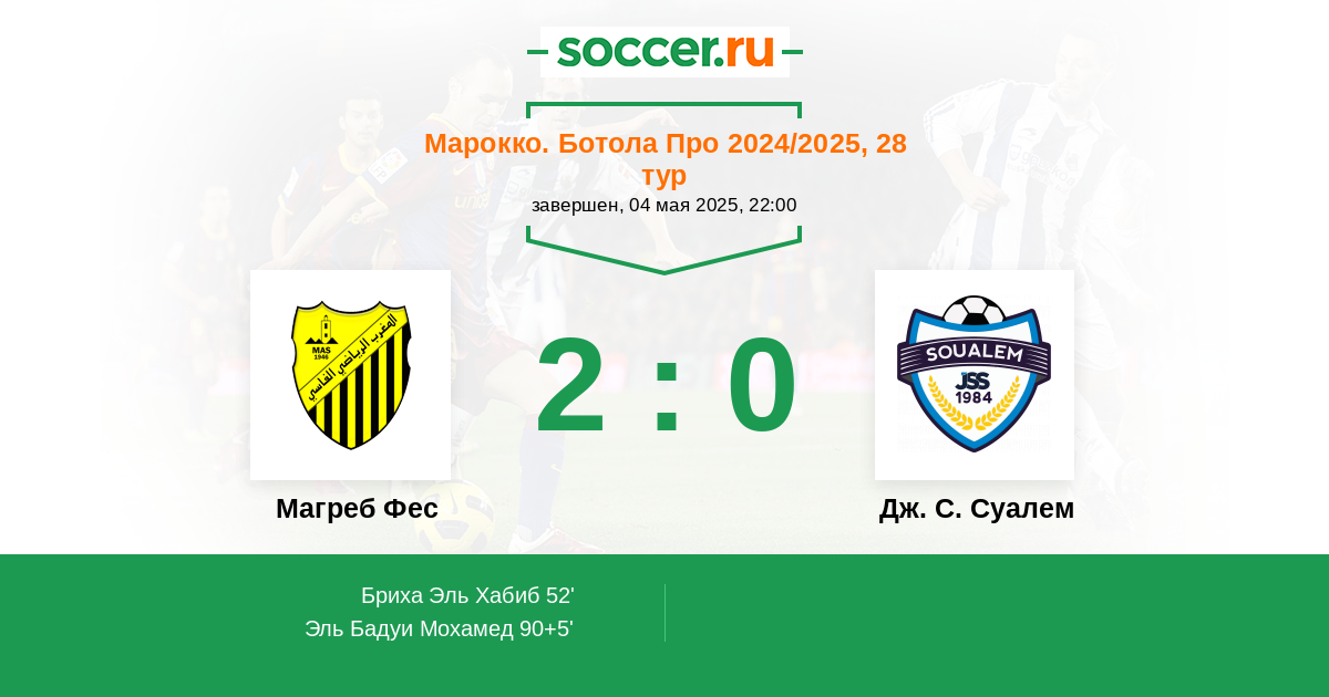Протокол матча Магреб Фес против Дж. С. Суалем