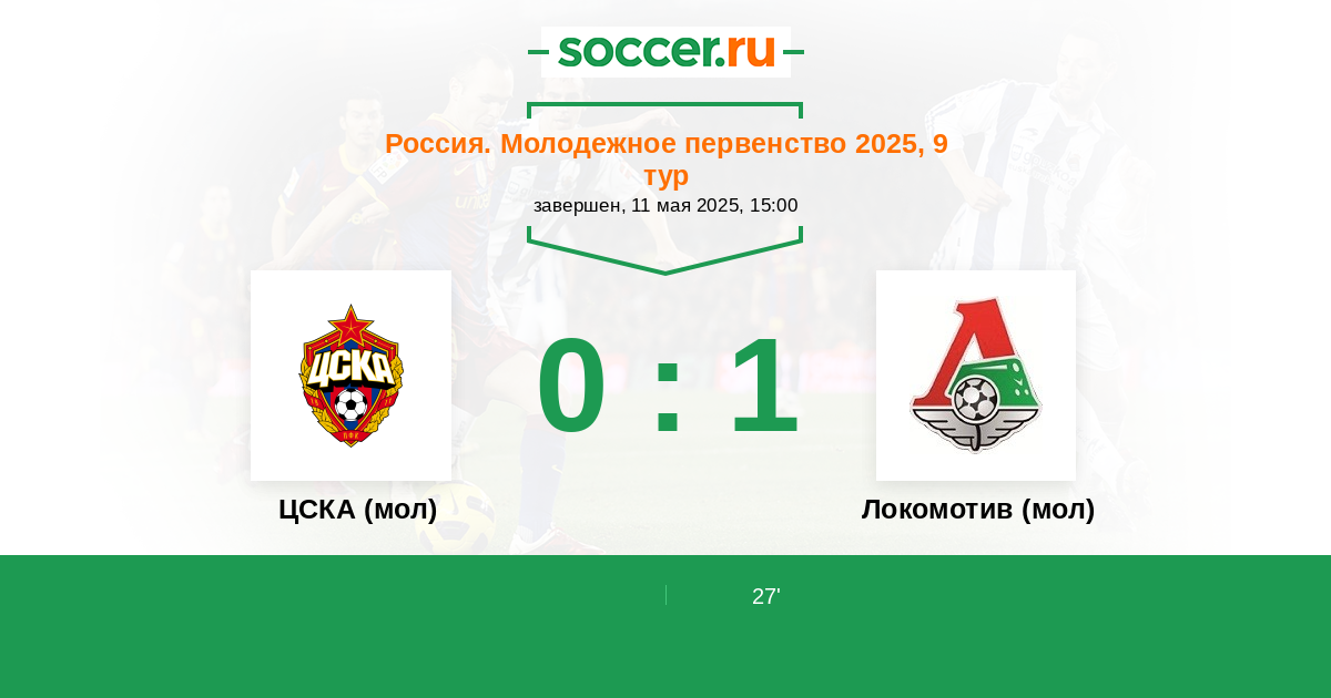 Протокол матча ЦСКА (мол) против Локомотив (мол)