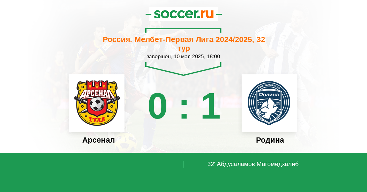 Протокол матча Арсенал против Родина