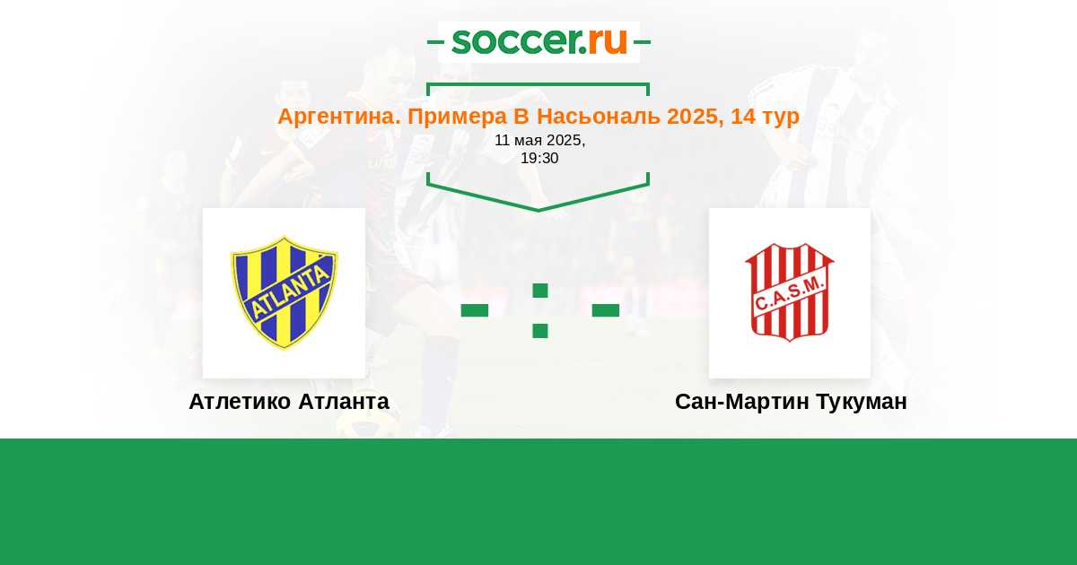 Протокол матча Атлетико Атланта против Сан-Мартин Тукуман