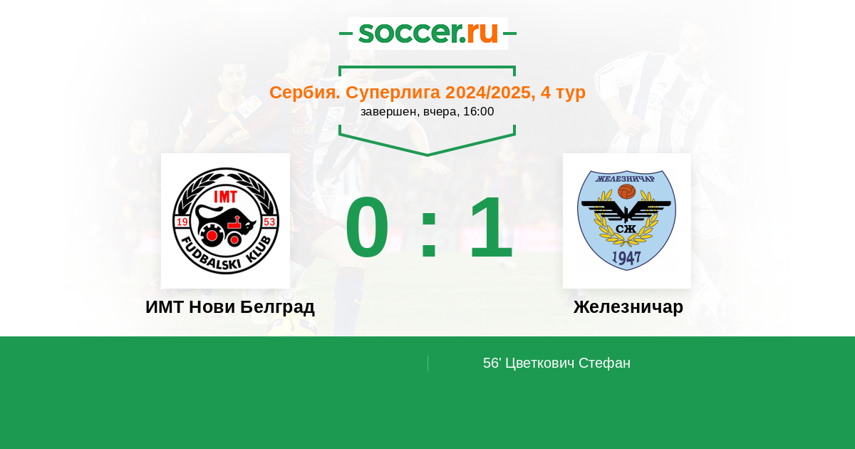 56' (0:1) Цветкович Стефан (11) (Пиргич Стефан (18))