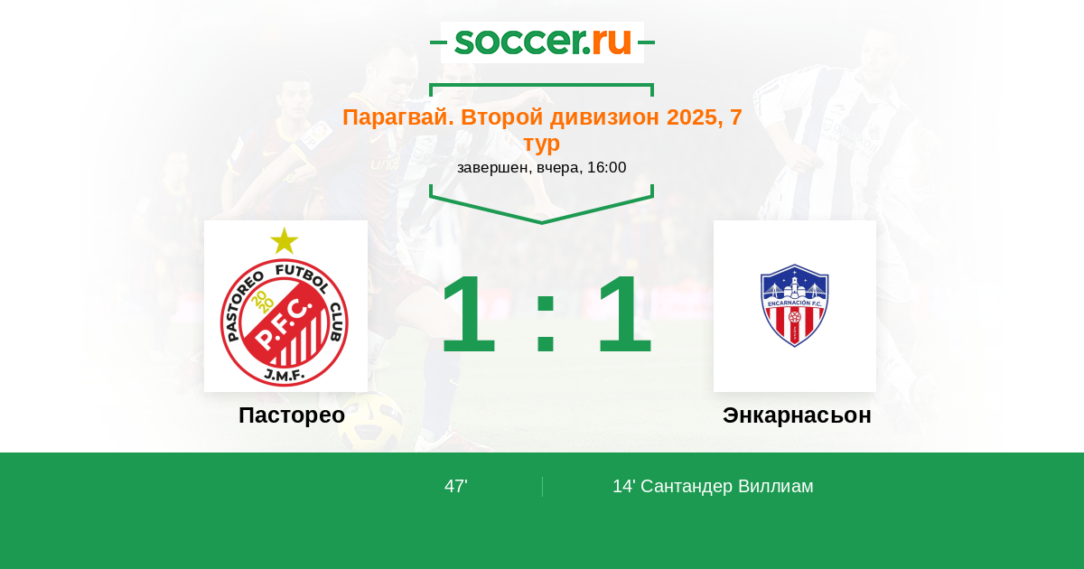 Протокол матча Пасторео против Энкарнасьон
