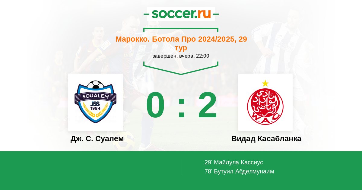 Протокол матча Дж. С. Суалем против Видад Касабланка