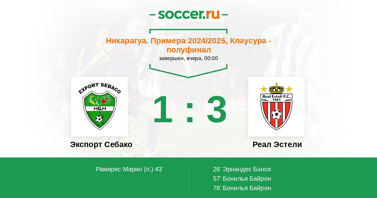 Протокол матча Экспорт Себако против Реал Эстели