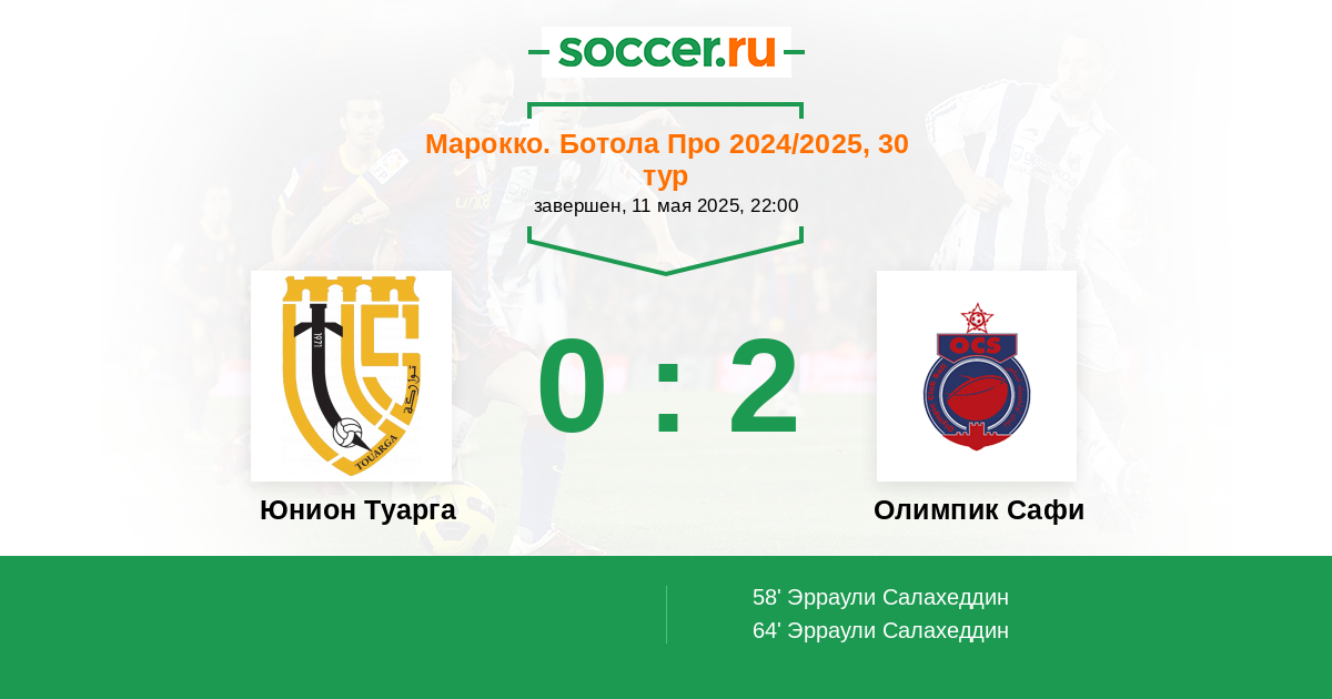 Протокол матча Юнион Туарга против Олимпик Сафи