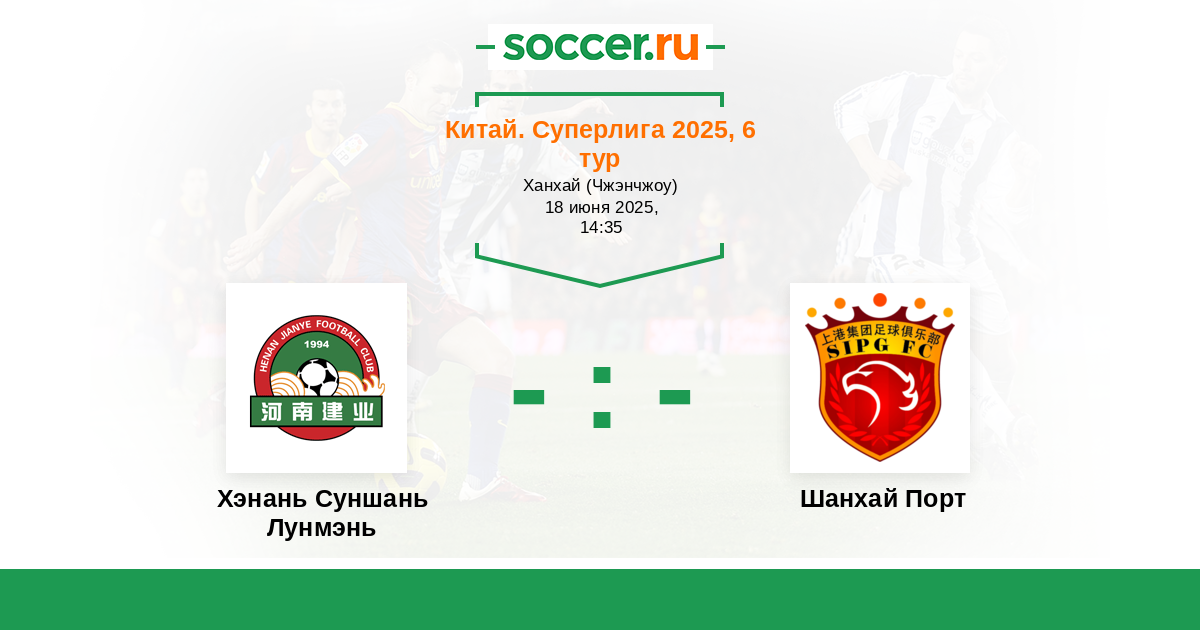 Протокол матча Хэнань Суншань Лунмэнь против Шанхай Порт