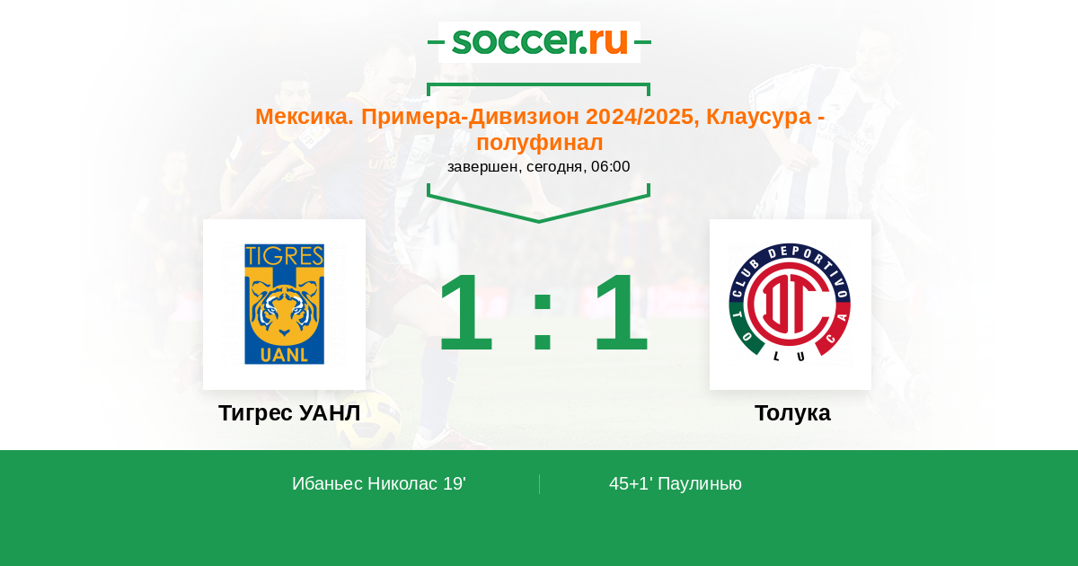 Протокол матча Тигрес УАНЛ против Толука