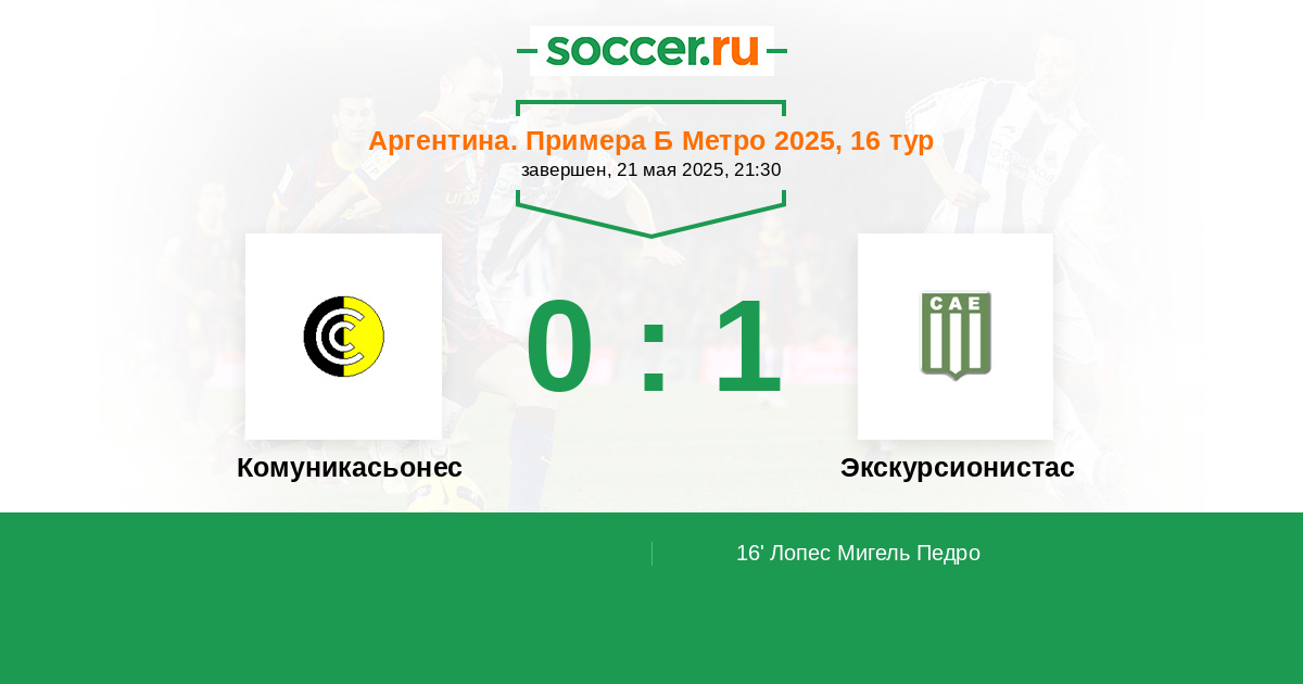 16' (0:1) Лопес Мигель Педро