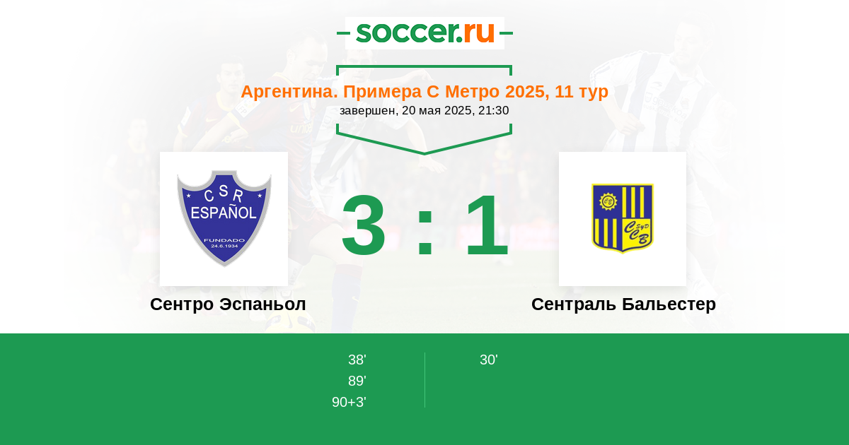 Протокол матча Сентро Эспаньол против Сентраль Бальестер